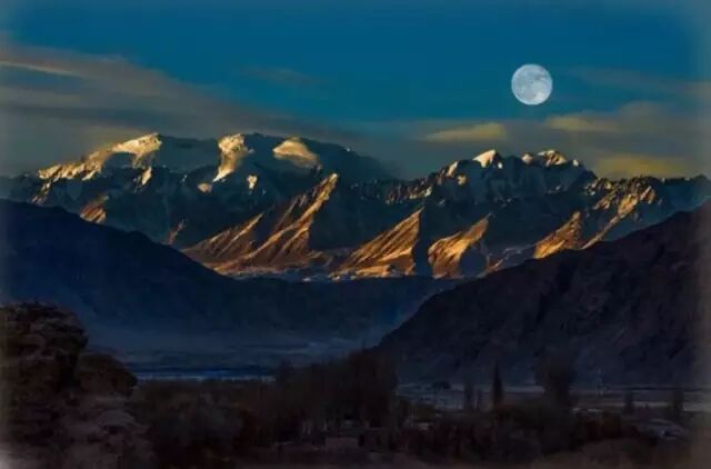 暮色中,月亮高悬,帕米尔高原显得那么远古神秘。