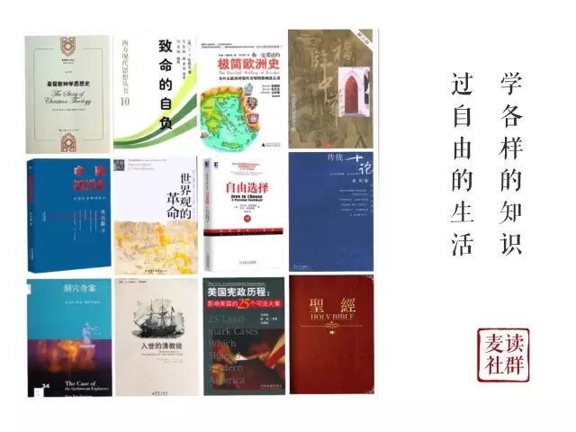 封面图片是2017年「麦读•社群」整年计划阅读的书目,之前在微信群招募成员时发布过。我选书的基本原则是立足常识,大众通俗,便于普及,所以这些书都不是特别难读,大都是同主题书籍里较为简明的读本。这样选书可以照顾大部分成员的阅读程度,在书目之外还有其他书籍,可供大家额外参考阅读。下面我简单介绍一下这些书,以及我选这些书的原因: