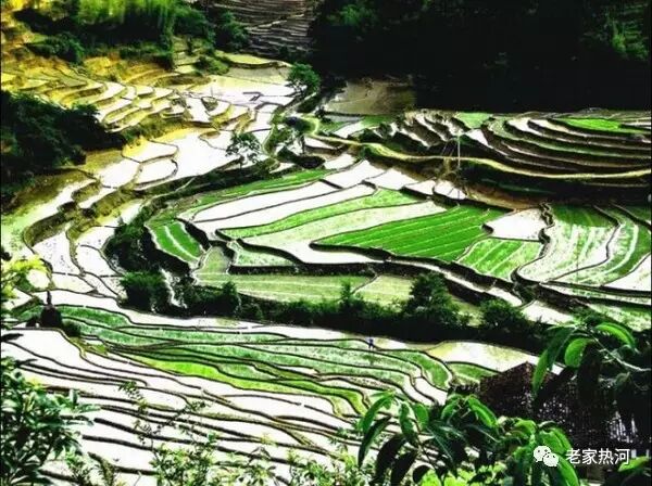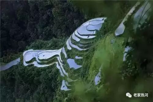 那层层叠叠的梯田,犹如天梯直上云端,只要拾级而上,仿佛就可以登上蓝天。站在山腰,放眼望去,密密麻麻的梯田,就象串串珍珠点缀大地,又如颗颗明珠洒落人间。