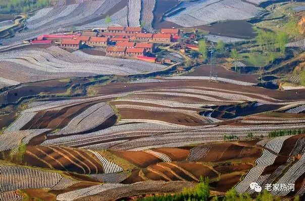 二绝:地势陡,从15度的缓坡到75度的峭壁上,都能看见梯田;