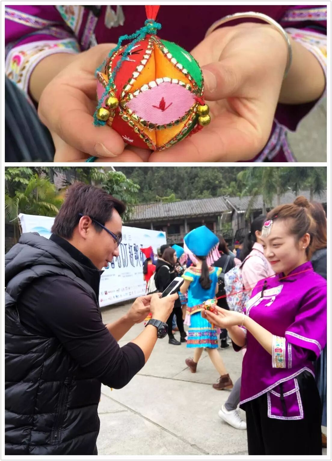 △壮家阿妹给玉林电台992交通音乐广播主持人肥仔献上吉祥的红绣球