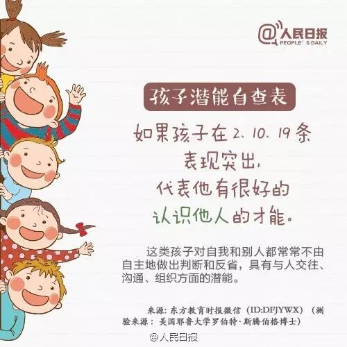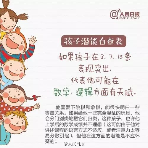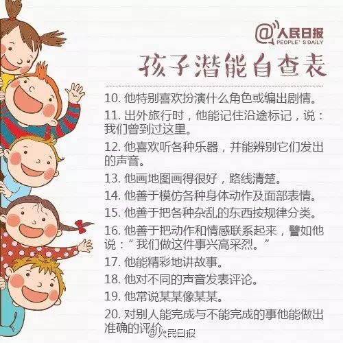 首页 | 母婴百科 | 亲子|一张潜能自查表,让孩子的天赋不被埋没! 亲子|一张潜能自查表,让孩子的天赋不被埋没! 2023-04-19 23:50:29 点击上方柳园清风,一键关注我们!每个孩子都有自己的天赋,通过观察孩子的日常行为,可以推测天赋所在。推荐一份孩子潜能自查表,家长可以细心观察、耐心引导,带领孩子尝试不同的可能性,然后顺应天赋去努力。转载自公众号:中国教育报柳园清风广西招生考试院微信号: liuyuanqingfeng