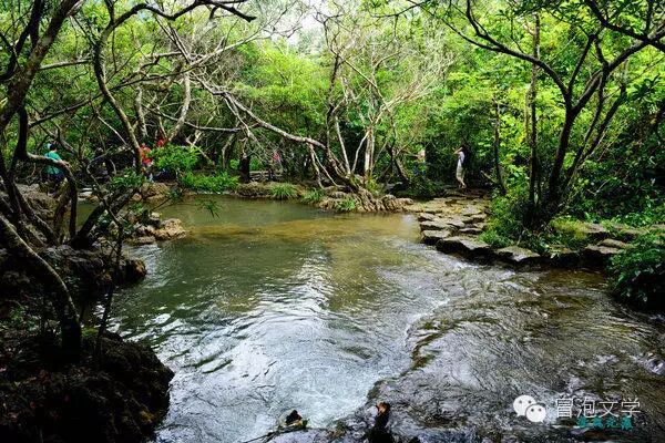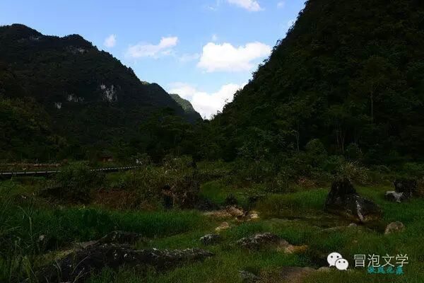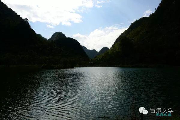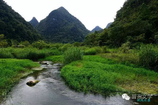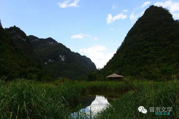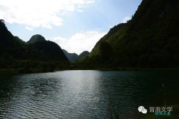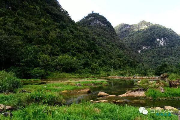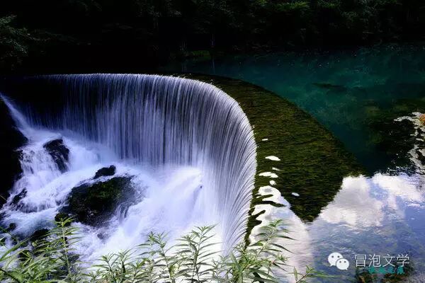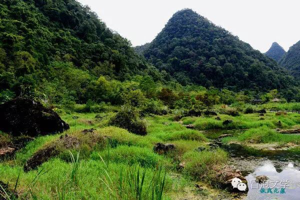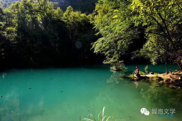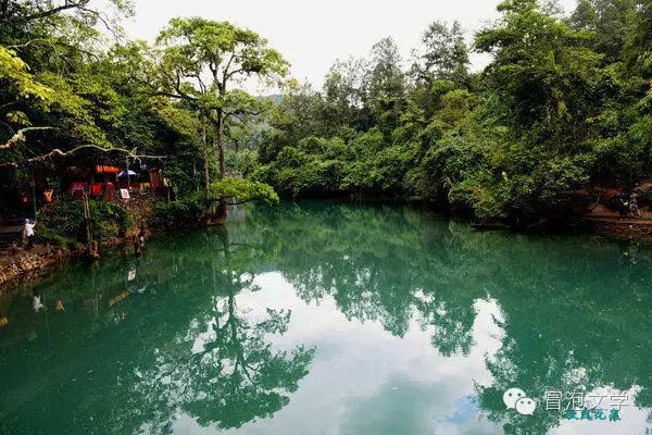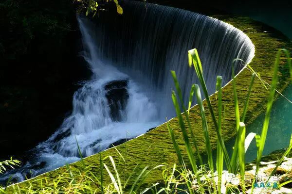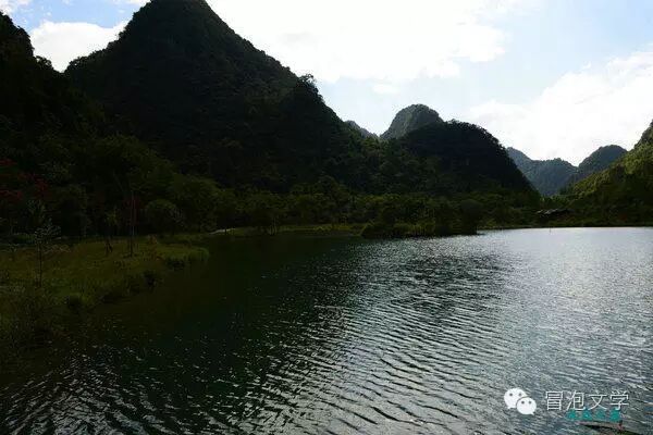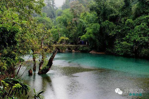 沿着瀑布上行,湿地公园般的翡翠谷,栈道蜿蜒,喀斯特地貌上的草、石,水,将秀美尽情展现,湿地上游,一个清澈的湖面,倒影青山,好一幅柔美南国画卷。