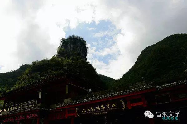 从贵阳乘车到达小七孔景区前的小镇已是中午时分,在小镇简单用餐后,来到游客服务中心,山谷中的游客中心之后,一座柱状山峰在蓝天下屹立,俊美的山峰引起人们对景区内秀美的诸多遐想。