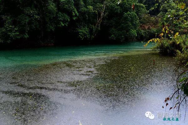 行至拉雅瀑布附近,一场突如其来的太阳雨,在水面荡起涟漪,倾盆大雨打湿了游人,也让雨伞下的相机经历雨水的考验,在雨中抓拍了拉雅瀑布和台阶瀑布的雨景,也初览了小七孔雨中秘境之美。