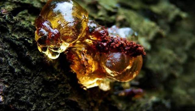 “宝贝”的名字叫做桃胶,一到夏天,农村里农民们种植的桃树上,和桃树结出的桃子上就会产出这样的胶体。黄黄的,黏黏的,有点像琥珀一样。