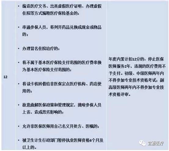 4月6日,《广西基本医疗保险定点医疗机构医保服务医师管理暂行办法》(以下简称《办法》)正式发布,规定自今年7月1日起,对医保医师实行积分制管理,年度内累计扣满12分的,停止医保医师服务2年,违规的医疗费用不予支付。下图为具体的扣分规则和处理方法: