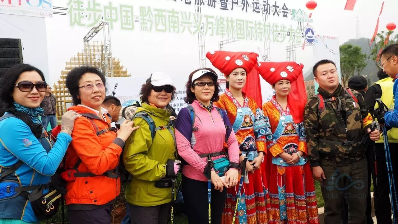 2016徒步中国•黔西南兴义万峰林国际持杖徒步大会今日在万峰林景区开赛,本次活动共有468名队员参加,分别来自安徽,北京,福建,甘肃,广东,广西,贵州,黑龙江,湖北,湖南,江苏,江西,陕西,上海,深圳,四川,辽宁,天津,新疆,云南,宁夏,山东,重庆等23个省市,以及美国,加拿大,意大利,德国,印度,哥伦比亚,俄罗斯,乌克兰,委内瑞拉,芬兰,贝宁等11国家的队员组成。