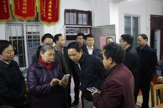 【图为黄东明书记在社区实地查看“微天网”应用情况】