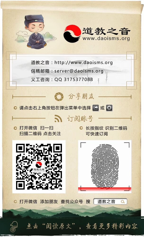 3、道教之音独家稿件,转载请注明出处,点击“阅读原文”可查看更多内容。