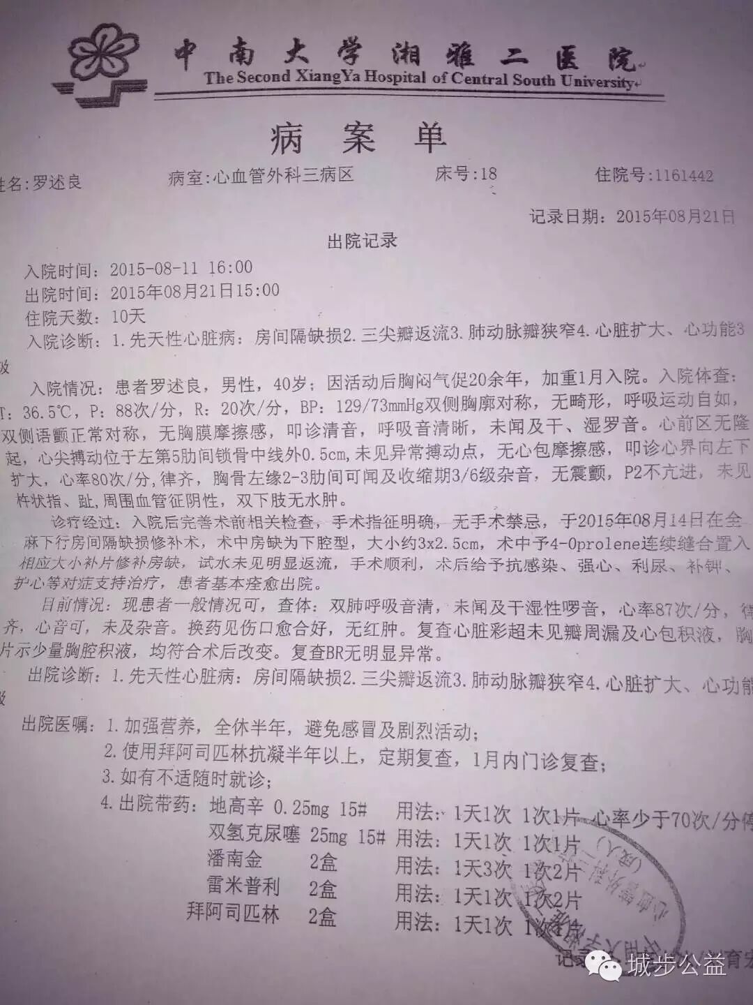 简陋的陈设,老旧的家具,一把对这个家来说较为豪华的家具----铁皮沙发据说还是好心的邻居送的。罗俊文全家五口,奶奶罗辛梅今年64岁,脑梗塞整整10年了,还患过膀胱癌,先后做了好几次手术,总算捡回了一条命。目前靠药物维持生命。实在受不了就去街上的小诊所消炎减缓疼痛。爷爷不幸于2015年癌症去世,留在家人们心中的悲痛至今还没有散去。俊文的爸爸罗述良才41岁,按理说正是一个实打实的劳动力,家里的顶梁柱。然而,疾病这个恶魔过早地光顾了这个大山里的汉子,使他饱受了折磨。因为心脏病,原来所工作的豪爵公司辞退了他;因为心脏病,他于去年赴长沙湘雅医院做了手术,至今胸部还留有长长的创伤;因为心脏病,这个血气方刚的汉子丧失了应有的劳动能力。俊文还有一个4岁的妹妹,今年也即将进入幼儿园学习。上有病中老母需要治疗赡养,下有一双儿女需要读书生活。一家人的希望寄托在了俊文的母亲梁微微身上。梁微微今年35岁,是一个贤惠的农村妇女,多年前为了爱从广西远嫁湖南,吃苦耐劳为家庭操了不少心,可是没有技术特长,只能给人打些短工挣点小钱勉强维持家里的油盐酱醋。而且由于常年操劳身体也每况愈下,劳动中曾几次晕倒,可是无钱去检查治疗。这正是:一家几口把病患,何日才能出青天?每当想到患病的老娘和自己,想到一双嗷嗷待哺的儿女,罗述良夫妻常常切夜难眠。