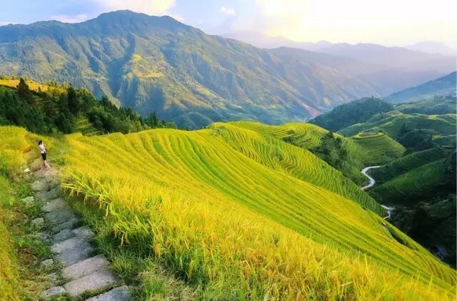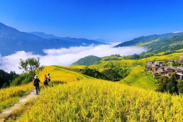 每年的金色秋收时节,广西龙脊梯田便呈现出惊心动魄的震撼美,只疑身在画卷之中,飞临仙境蓬莱。