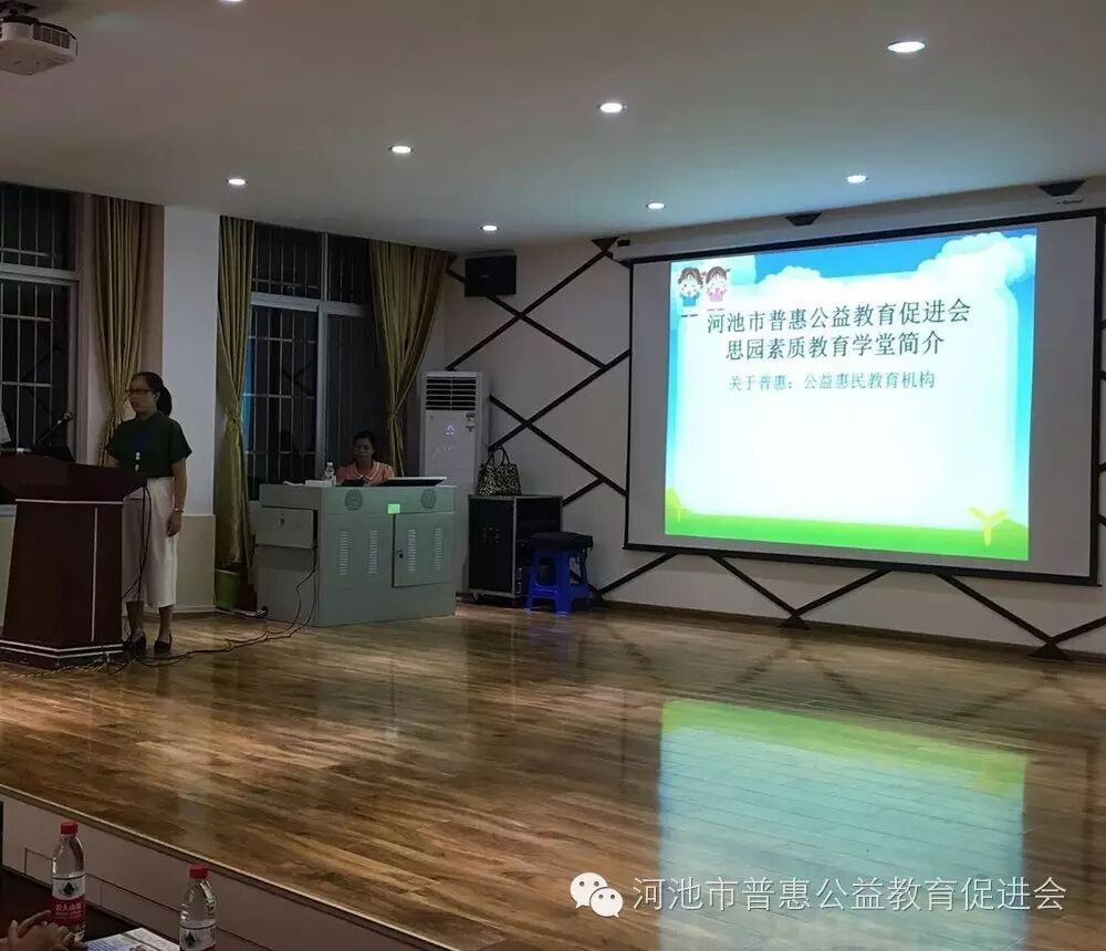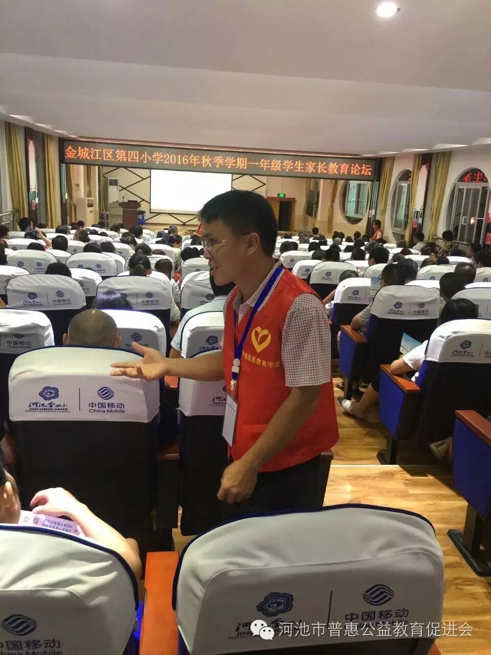 9月8日晚上,应金城江区第四小学邀请,河池市普惠公益教育促进会携手思园学堂一起到四小,参加“金城江区第四小学2016年秋季学期一年级学生家长教育论坛”。金四小一年级新生家长、班主任及教职工等一起参加了本次活动。
