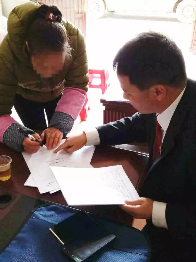 在法官的引导下,被执行人在法律文书上签字确认