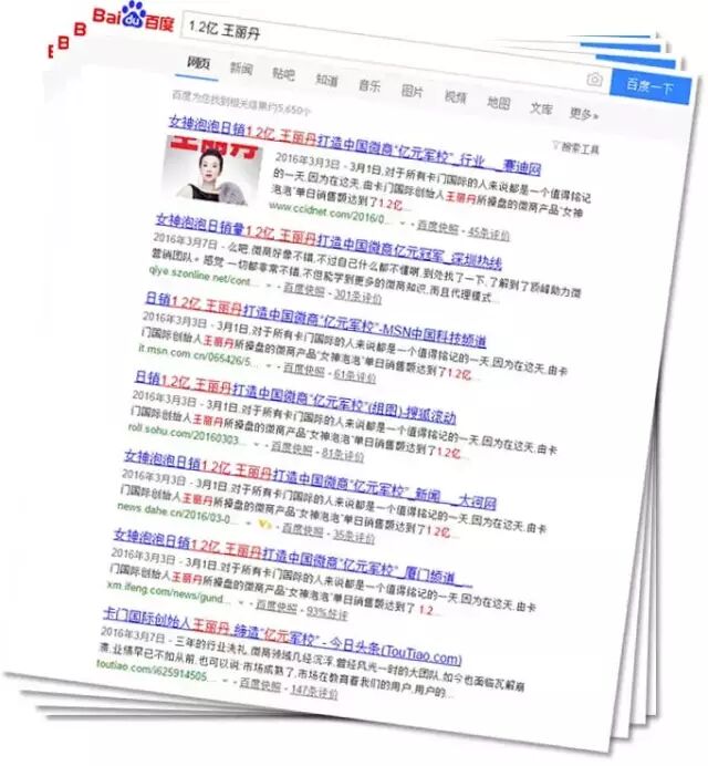 2016年3月1日,对于所有【卡门国际】的人来说都是值得铭记的一天,因为在这天,由【卡门国际】创始人王丽丹所操盘的微商产品“女神泡泡”单日销售额达到了1.2亿,上市7天销售金额高达1.75亿! 不管是王丽丹的朋友圈,还是她的核心总代群,每天被这些铺天盖地的财富数字疯狂刷屏,不断刺激着人们的敏感神经。