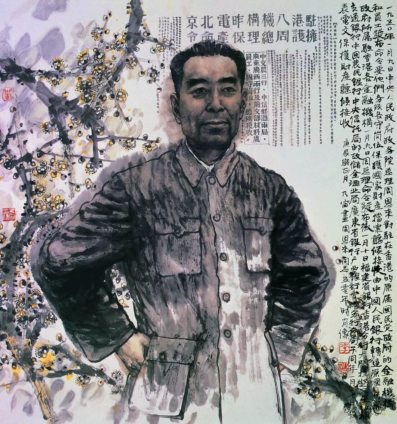 忽然想起,银行博物馆的藏画里,也有一幅以为主角的国画作品。画面透过镇定自若、大智大勇的神情,揭示了另一段金融史实:1950年1月9日,共和国百废待兴。,,要求他们“务须各守岗位,保护国家财产档案,听候接收”。命令发布的次日,;交通银行、中国农民银行、、邮政储金汇业局、广东省银行、广西银行在香港的分行、分局,于同年1月17日分别发表电文,表示要保护财产,听候接收。作品酣畅淋漓,气势不俗,用细腻写实的笔法,制造出强烈的视觉冲击。画者李乃宙,为中国美术家协会会员,中国传媒大学美术系教授。