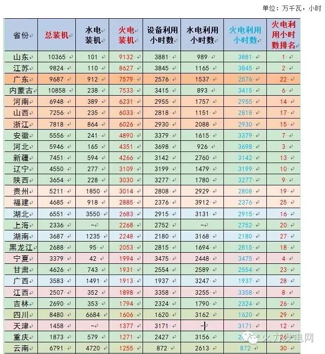综合各省火电装机排名以及火电利用小时排名情况,作出以下判断: