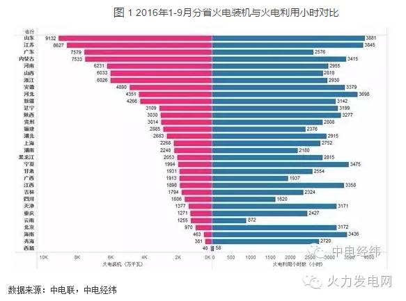表 1 2016年1-9月分省装机及火电利用小时数综合排名情况