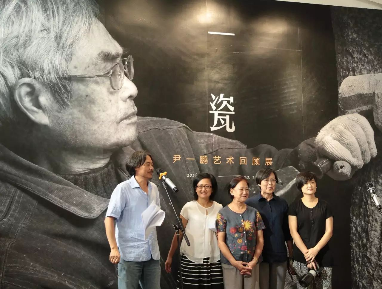 尹一鹏家人在展览现场,开幕式主持人夏和兴先生介绍