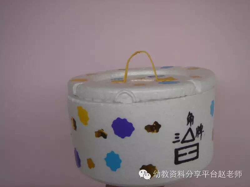 自制教玩具 一,名称:《多元宝盒》 制作材料:笔外包装盒、粗细吸管、红、黄、绿、银色即时贴、卡纸、回形针 制作过程:制作三本从易到难的供操作的图片,用回形针挂在笔包装盒上面,便于幼儿操作时翻看图片。将细吸管用银纸包裹,作为插棒,把粗吸管用红、黄、绿色即时贴包裹,并剪成相等的约1㎝小段。(供《按数取物》《按图排序》用。将细吸管用红、黄、绿色包裹,剪成约6㎝长段,供《按图插棒》操作时用。将笔盒下方有笔孔眼的纸用胶带纸包裹固定。 使用方法:《按数取物》翻开1号本,取1条插棒插入笔盒,按图片上的色彩和数字取相应个数和色彩的圈套入插棒。 《按图排序》翻开2号本,取1条插棒插入笔盒,按图片上的已有排序的模式在插棒上排序,也可以在笔盒内插棒排序。 《按图插棒》翻开3号本,按图片上的插棒色彩在笔盒内插相应的插棒,要求要对应图片的色彩和位置去操作,发展幼儿的时空方位感。 (适合中班下学期幼儿使用) *教师可以改变本子内容更改用法,如:分类、数字分解等 图: 二,不倒翁 1、制作材料:乒乓球、白色硬纸、橡皮泥、彩笔、胶水、剪刀等。 2、制作方法: (1)把乒乓球用剪刀去掉一半,将橡皮泥捏成团填在半个乒乓球内抹平。 (2)把白色硬纸剪成一扇形,扇形的弧长应稍大于乒乓球的圆周长,并将扇形两边对接做成一圆锥形。 (3)将纸圆锥与乒乓球粘接起来,用彩笔在乒乓球上画出头像,白色的锥形帽子也可用孩子熟悉的图案或花纹进行装饰。这样一个可爱的不倒翁就制成了。 除此方法外,还可利用雪碧瓶的底部(去掉底托)与瓶的上部,用类似方法制作。 三,水上莲花 这是一种非常受幼儿欢迎的玩具,在小中大三个年段中都可以投入。 一、制作材料:乒乓球,泥工板。 二、制作方法:将乒乓球对半剪开,把边修成齿状(花状),也可将半个乒乓球对半剪开,再对半剪成两头尖的小船。三、玩法:在光滑的泥工板上抹上些水,将“莲花”或“小船”放在上面,任意倾斜泥工板,你就会发现“莲花”在高速的旋转,同时,你得小心控制泥工板,不要让“莲花”掉到地上,因为它转动的速度实在快,所以幼儿们喜欢玩个不停。图中是本班幼儿玩的情景。 四,七色花 准备材料:彩色卡纸、废旧纸盒,彩色即时贴、剪刀、塑封机。 制作方法: 1.用彩色即时贴装饰纸盒,并在纸盒面上贴出花瓶的形状,用铆钉固定花心。 2.彩色卡纸剪出不同形状的花瓣,并塑封。 游戏玩法: 幼儿可发挥想象力、创造力,用塑封好的不同颜色和形状的“花瓣”在有“花心”的纸盒上拼摆出不同的“花朵”。可反复操作,直到拼出自己满意的作品。