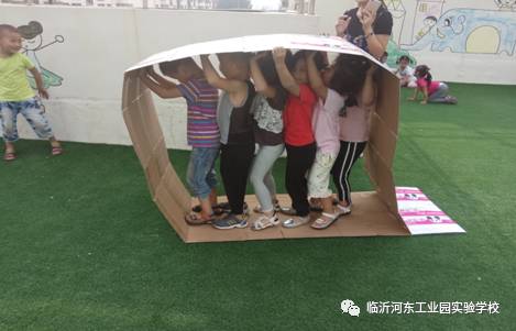 中二班展示的是“大转轮”。大转轮是由多个牛奶箱子粘贴而成,既牢固又环保,可以容纳多个孩子同时进行玩耍。小朋友们只需要一起站在上面或者趴在上面,将步调协调一致一起往前走就可以,大转轮就会慢慢地转起来了。除此之外,还可以将大转轮支撑起来,进行钻山洞、过河等多种游戏。作用:发展了孩子们的肢体协调能力,同时也培养了孩子们之间团结合作的精神品质。