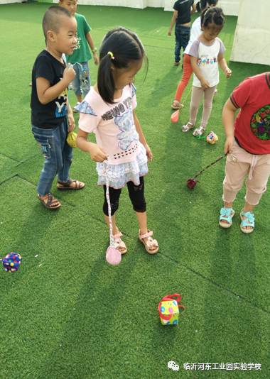 中一班展示的是拴有绳子的沙包,沙包都是家长们提供的,有的是家长亲自缝制,也有的是家长买的成品。沙包的玩儿法也有很多种:可以提着绳子踢沙包,可以一边扔一边踢,可以进行投掷,也可以放到牛奶箱子里让孩子们进行颠沙包的练习。作用:通过玩沙包,可以在锻炼孩子手眼协调能力的同时,促进孩子身体各个部位小肌肉运动以及大肌肉动作的发展。
