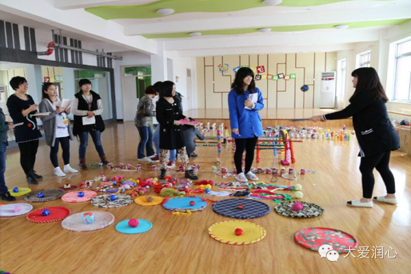 经过一周的精心准备,老师们积极利用休息时间广泛收集材料,联系家长,班内教师互相商讨、互相合作,充分发挥自己的专业智慧,那些原本被丢弃的废旧自来水管、木棍、饮料瓶、废纸板、布条等材料变成了具有教育价值的特色教玩具,“小推车”、“七彩飞盘”、“花样毽子”、“自制高跷”……各种教玩具七彩纷呈。本次教玩具的制作本着可操作性、科学性、实用性、环保性的原则,充分体现了“以幼儿发展为本”的教育理念。