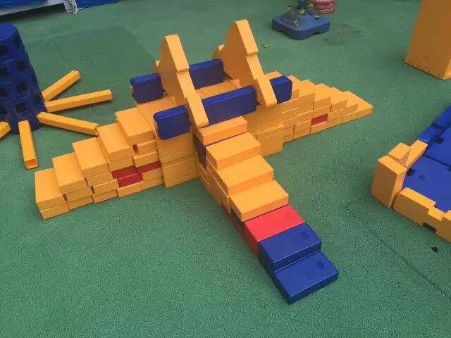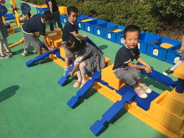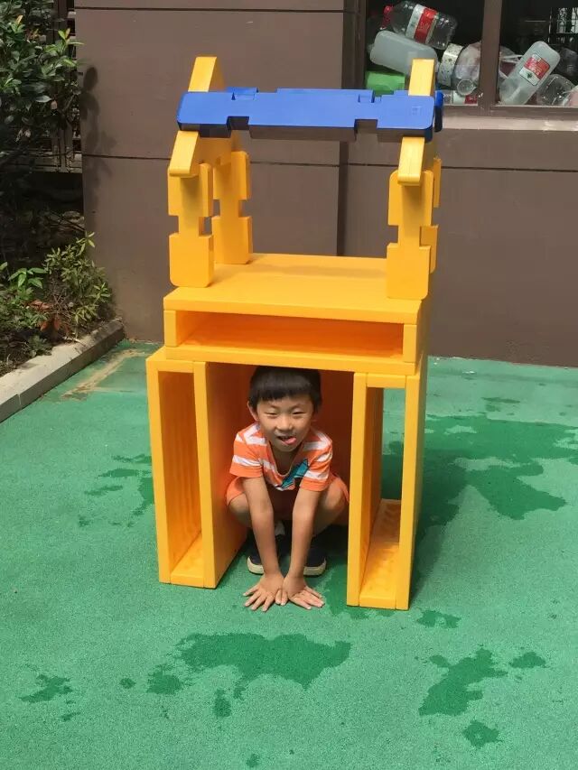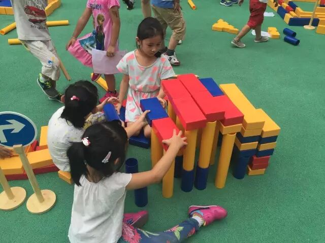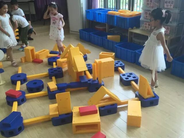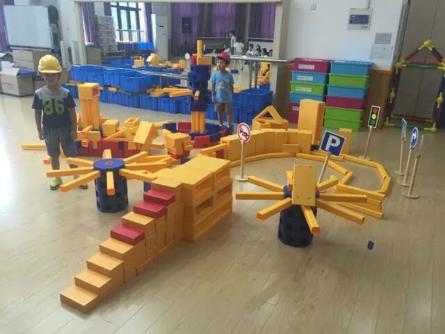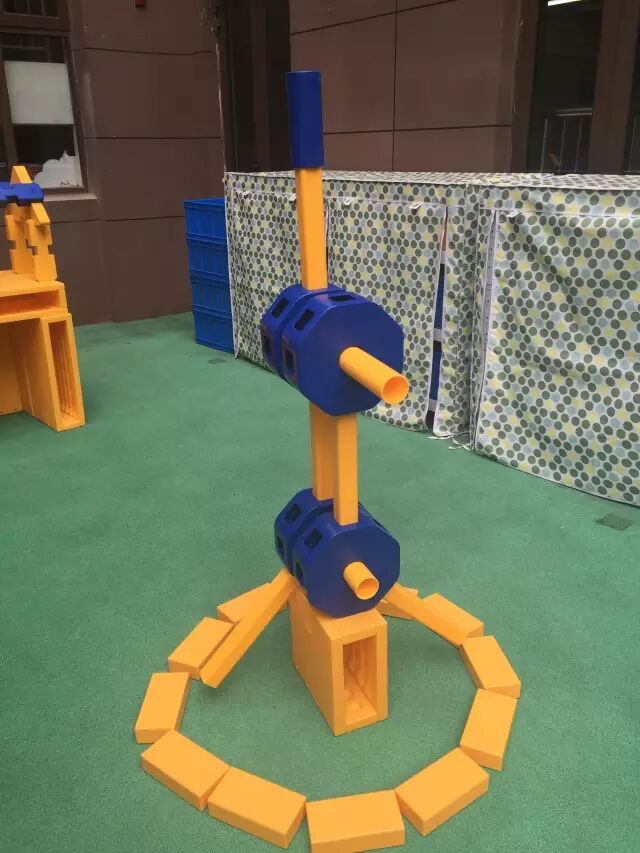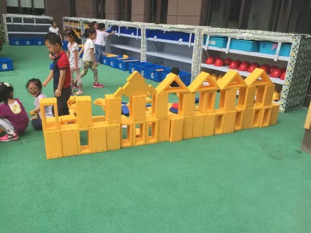 原来,每一个孩子都是天生的建筑师,这个他们口中称为“大型积木”的亿童户外游戏建构材料在他们的小手中仿佛有了魔力,孩子们在游戏中挥洒出来的想象力和建构能力,让老师们既惊讶又欣喜。