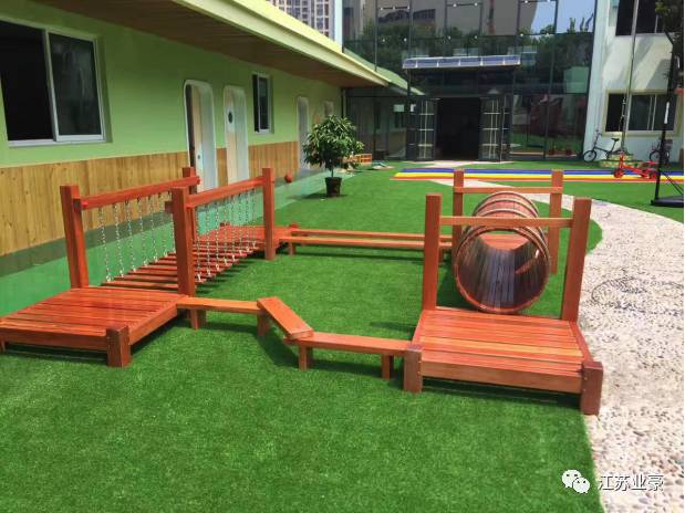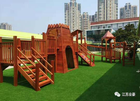 业豪的户外游乐设备均由专门的户外柳桉木制作而成,接口处采用榫卯结构组成,可以防止日晒雨淋,使用寿命较长,不会轻易开裂与损坏。