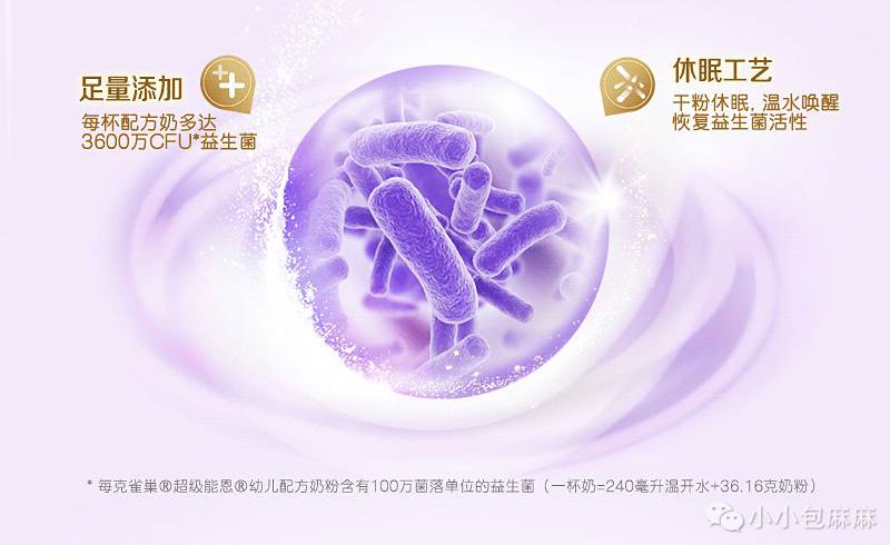 源自雀巢瑞士研发中心的独特的活性益生菌.每餐奶中多达3600万益护因子,可以帮助宝宝建立健康肠道菌群;其他的钙铁锌、维生素C等科学营养、合理配比可以满足宝宝成长所需。