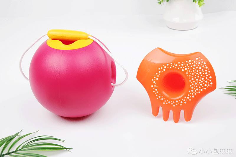 嘟嘟嘟水桶:设计很特别,充满艺术气息,不同于传统的水桶,造型是圆的。绳子的把手是从桶的镂空中部穿过,这样的目的是为了“防洒”,椭圆手柄非常适合小宝宝抓握。当宝贝接了一桶水,屁颠屁颠的跑过来,可以满载而归,这样的设计真的是太贴心了有木有!