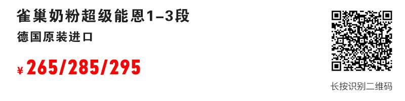 雀巢超级能恩婴儿配方奶粉1段(0-12个月)800g 295元包邮