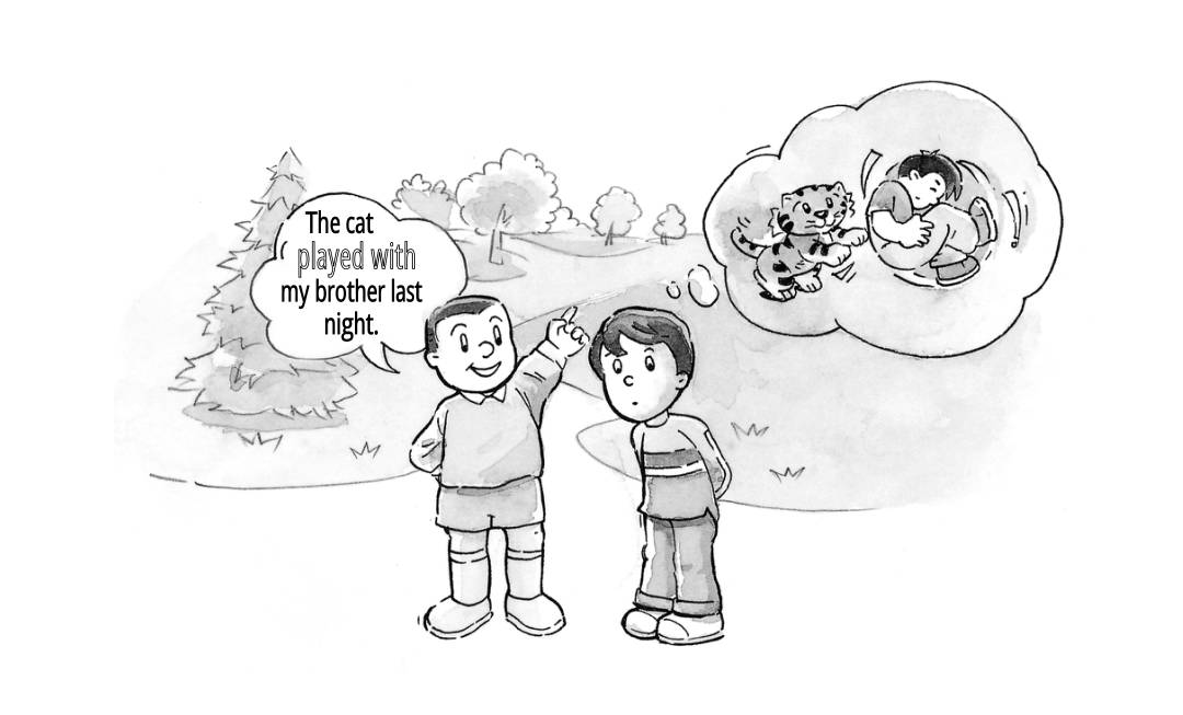 再比如“那只猫正在玩球”就是“The cat is playing with a ball”,不可以说“The cat is playing a ball”。同样,“那男孩子正在玩他的玩具火车”,就是“The boy is playing with his toy train”,而不是“The boy is playing his toy train”。再比如,我们觉得烦闷、无聊或者紧张,也会玩一些东西。比如,有些人有时坐着会玩笔,可以说“Play with a pen”。