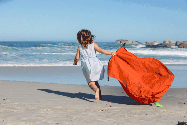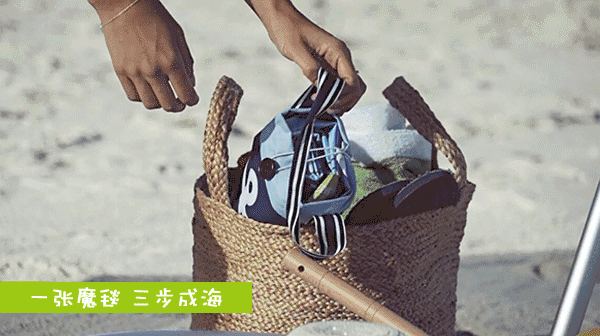而这个坐毯称之为“魔”毯,还因为如果在海滩使用,它还可以为你创造一隅私人海域!