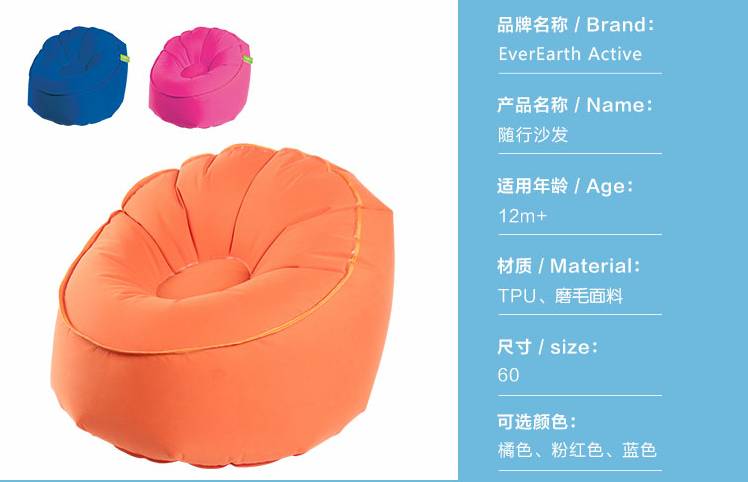 2、德国EverEarth便携沙发(橘、粉、蓝3色可选)