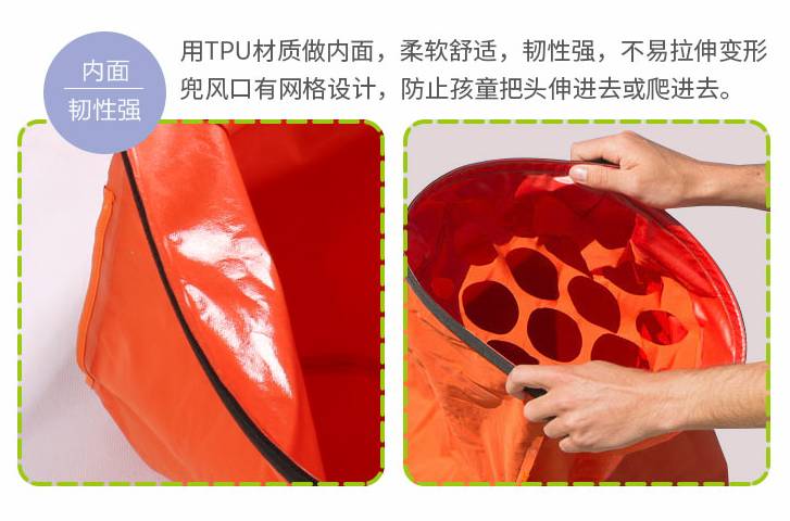 内面是TPU材质,兜风口的网格设计,防止孩子把头伸进去,太贴心: