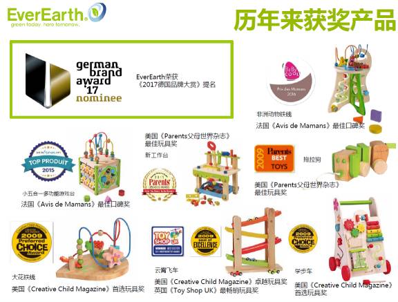 EverEarth虽然年轻,可是在玩具,特别是木质玩具等方面已经有无数大奖加持了: