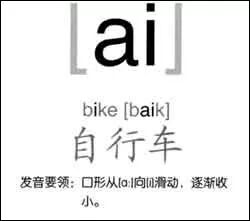 [ai]开始部分/a/和汉语普通话“a”音相仿,但舌位更靠前,发音是舌尖必须抵住下齿。
