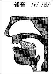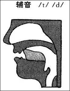/d/舌尖紧贴上齿龈,形成阻碍,然后突然下降,气流冲出口腔,声带要振动。