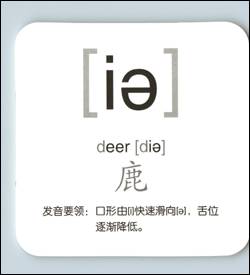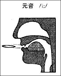 /i:/舌尖抵下齿,舌前部向硬腭尽量抬起,没有摩擦。嘴形向两旁伸开,尽量向后开咧,成扁平形,读音比/i/