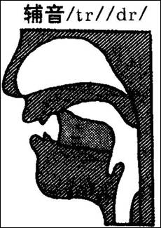 舌尖舌端抬起贴住上齿龈后部,形成阻碍,气流冲破这个阻碍后,舌和齿龈间仍保持一个狭缝,发出摩擦的声音。声带震动。