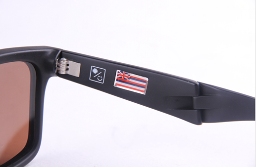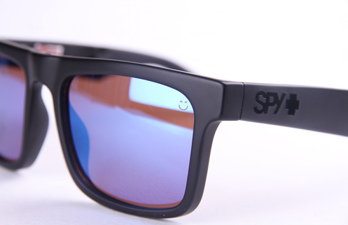 而眼镜内侧和镜面右上角,则印有SPY独家happy lens的技术认证与SPY logo