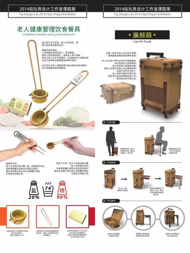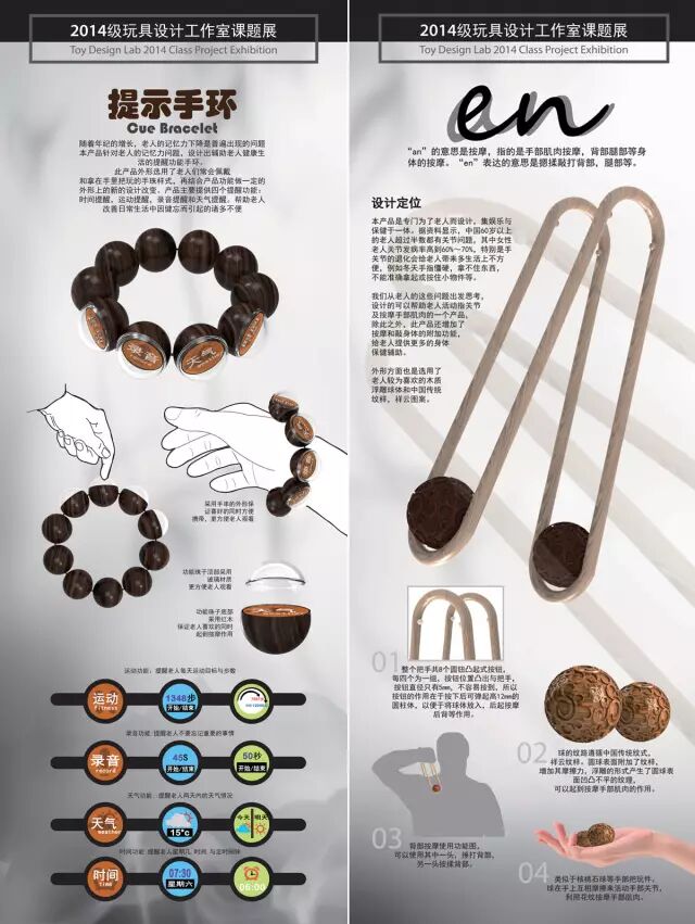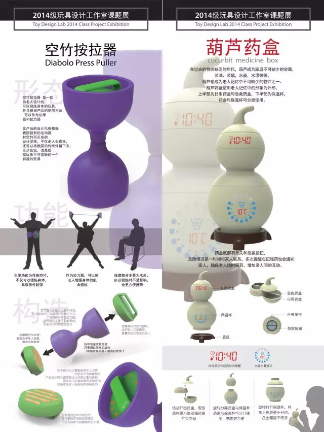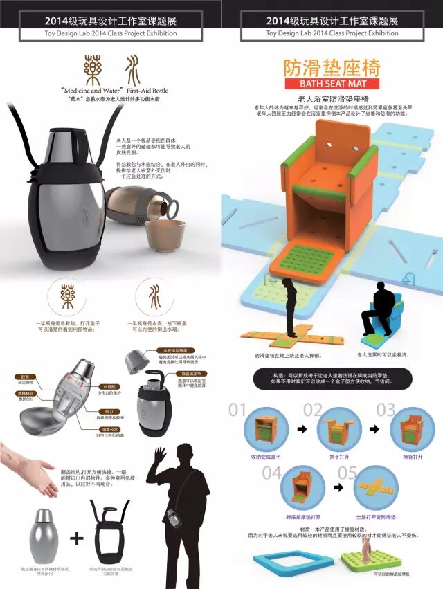 本次课题展为产品造型学院玩具设计工作室举办的首次课题展,以“老人生活用品设计”为主题,研究对象主要针对我们身边的老人们在日常生活中经常使用的各式物品。在寻找其功能方面不足之处并加以完善的同时,也力求在改良过程中应用上多种创意想法。