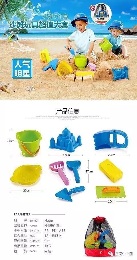 【玩具详情】:Hape儿童沙滩玩具套装1-2-6岁宝宝