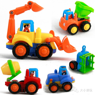 @苗仔妈:强烈推荐,喜欢工程车的男孩必入基本款。一套有四种车:工程水泥搅拌车、工程推土机(挖掘机二合一)、工程自卸车、农夫拖拉机(带拖斗)。惯性特别好,可以爬小坡。话说汇乐的低幼玩具真是不错,颜色鲜艳,没有棱角,很轻,不会磕碰到小朋友。价格便宜,性价比高。
