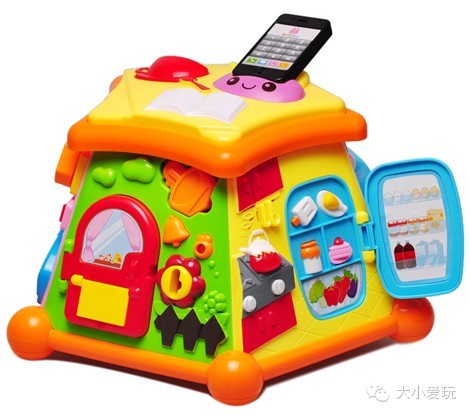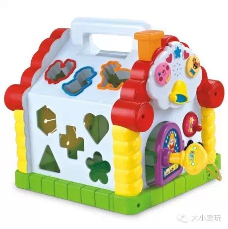 特点:小屋顶上有立体的动物形状,宝宝放入对应的动物积木,小屋便发出该动物的叫声,帮助孩子辨别形状和声音。开锁、算珠、键盘、按钮能提高孩子对未知事物的探索能力,并进行算术、音乐方面的启蒙。