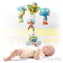 特点:有6种不同音乐系列,可40分钟不重复地播放音乐,满足宝宝不同阶段的需求。拔掉床铃的手柄就可以单独作为音乐盒携带外出。床铃的用色也很鲜艳,可同时锻炼宝宝的视觉和听觉。