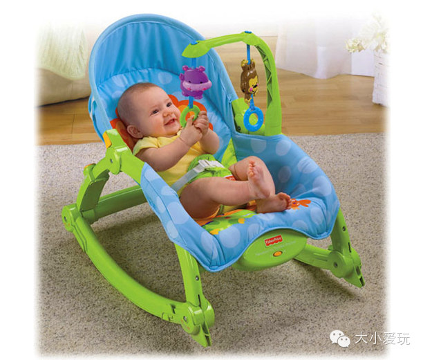 特点:椅子靠背有两档可调节,还可在摇椅和静止座椅间转换,座椅上方有三个有趣的旋转玩具,拉一下能播放音乐。宝宝睡觉时可开启电动按摩功能,让摇椅轻轻摇摆,安抚宝宝入睡。