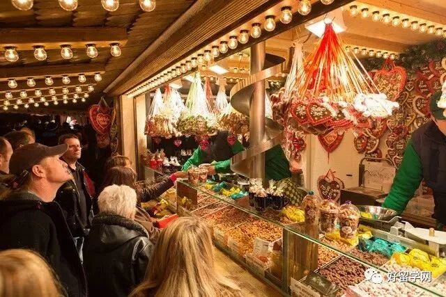 这里有超过120个摊位,是除了德国和奥地利以外,最大的德国法兰克福风的圣诞集市,不仅仅提供美味的食品和饮料,还有各种小礼品。椒盐卷饼,炸肉排,多种口味的腊肠,热狗,还有不可或缺的圣诞热红酒,小麦啤酒。在这里,不仅仅能做维多利亚广场享受到现场音乐,还能欣赏到各种手工木质装饰物或者各种精致的玻璃物品,手工皮革制品,玩具,珠宝,等等。