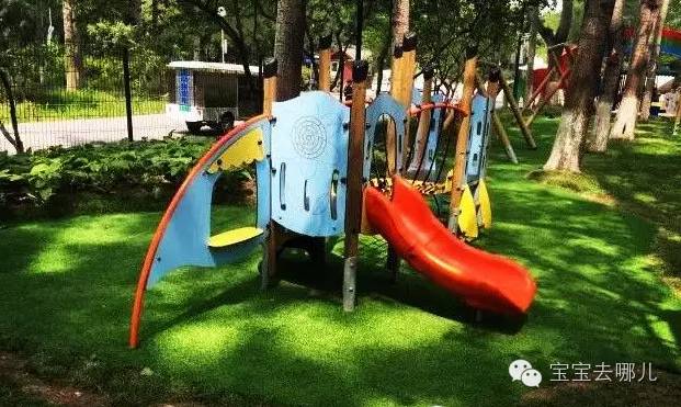 很适合1-3岁的宝宝,包括小型滑梯,毛毛虫爬网,小火车,小秋千,翘翘板,绿色草坪滑坡,所有设施萌萌哒!